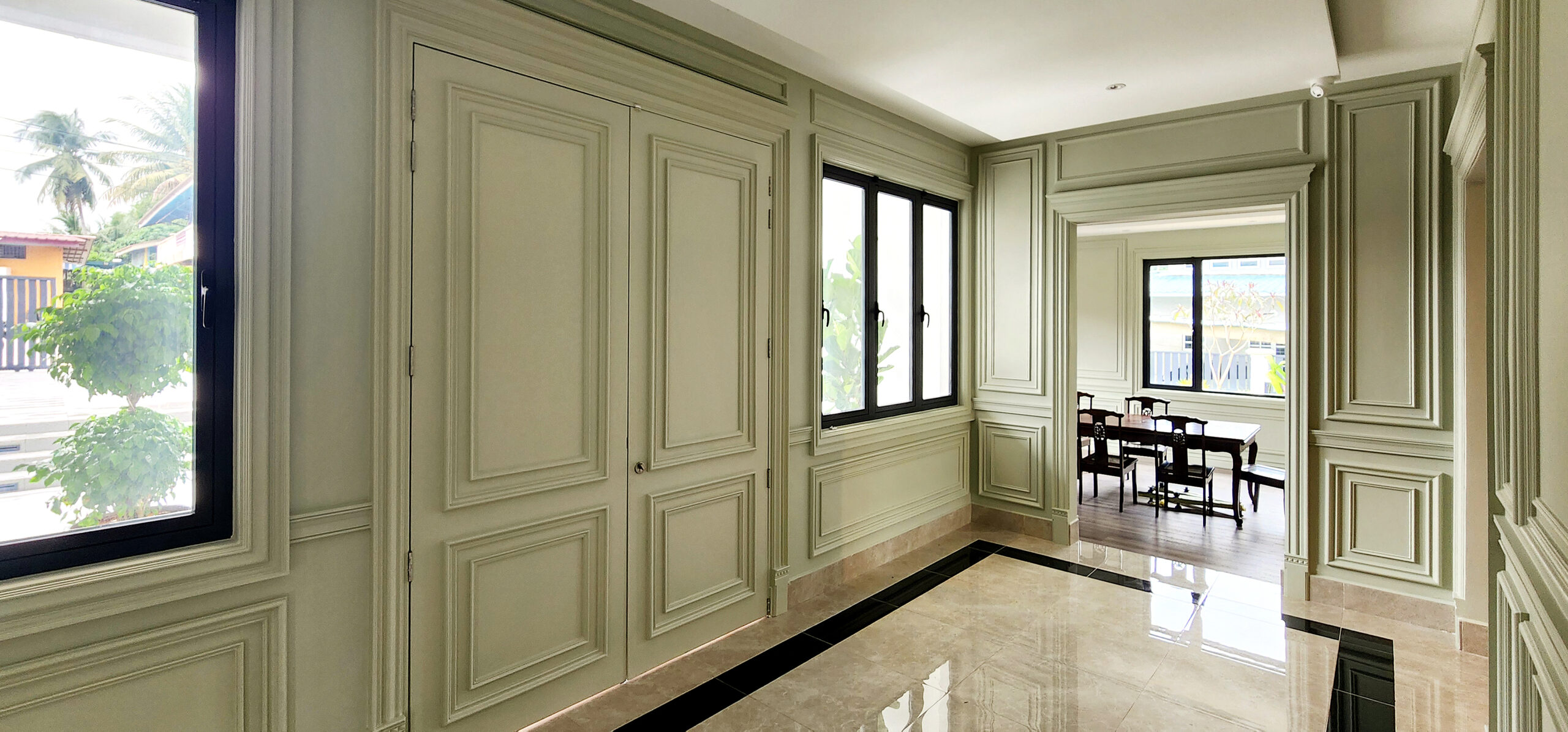 AM Themeworks uses premium P.U (polyurethane) for wall paneling and beading. This material is durable, versatile, and ideal for creating intricate, elegant detailing in your home.